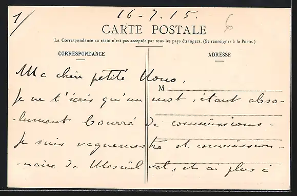 ungelaufen, Rückseite beschrieben 1915, guter Zustand