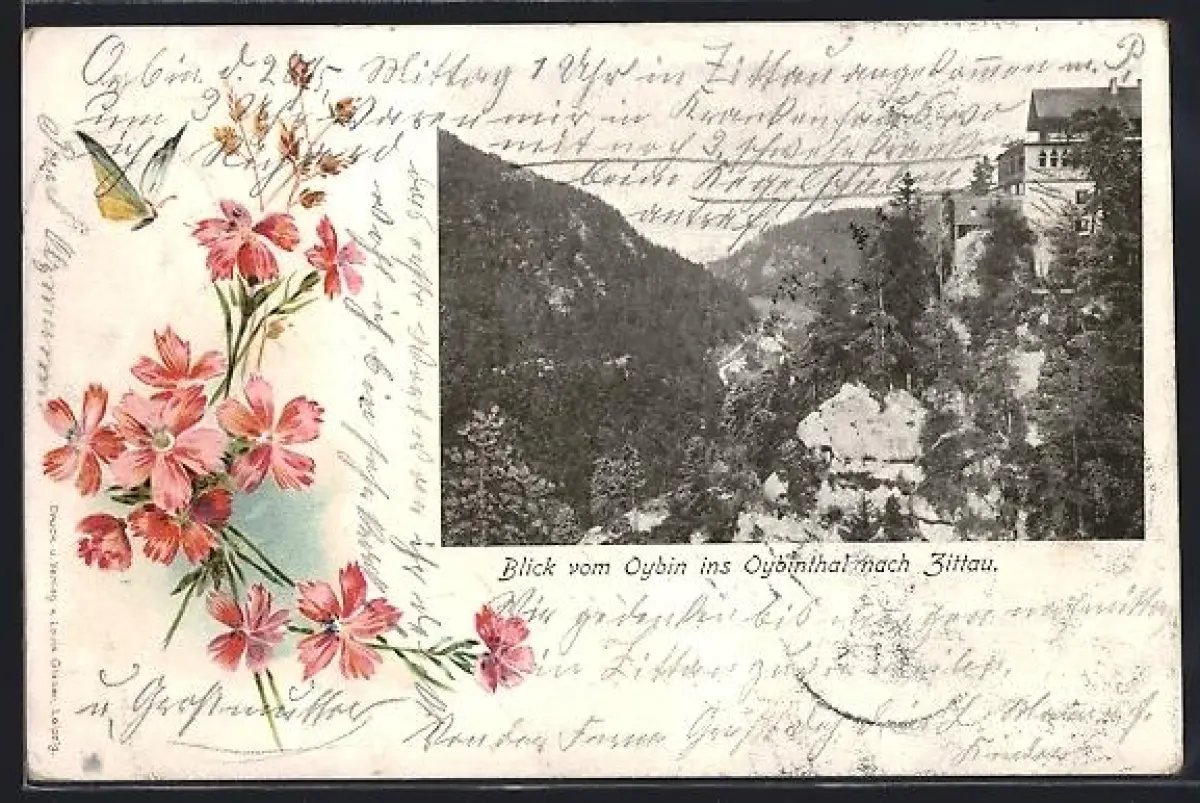 AK Oybin, Blick vom Oybin ins Oybintal nach Zittau