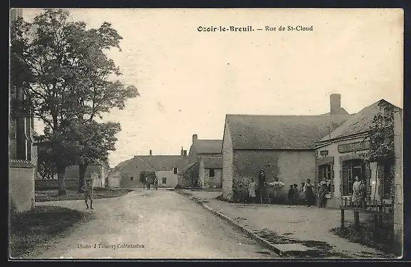 AK Ozoir-le-Breuil, Rue de St-Cloud avec habitants et bâtiments anciens