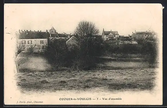AK Ozouer-le-Voulgis, Vue d`ensemble du village et des champs environnants