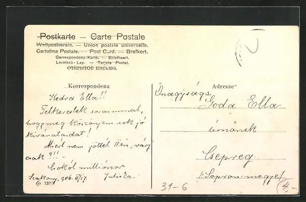 alte Ansichtskarte, gelaufen, Briefmarke entfernt, guter Zustand