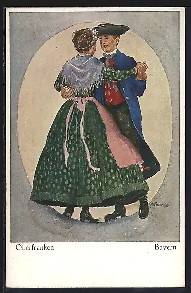 AK Paar aus Oberfranken tanzt, bayerische Tracht