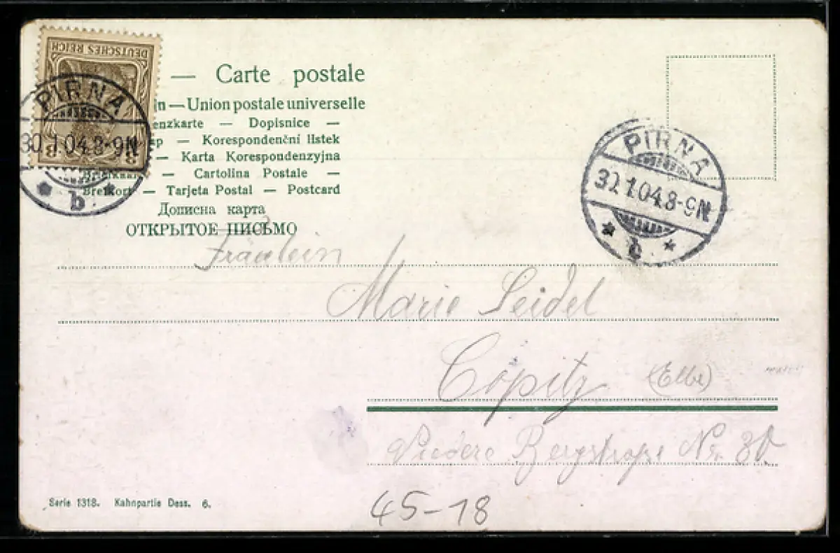 gelaufen 1904, Ecken bestoßen, guter Zustand