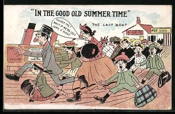 AK Paar mit Kinderschar am Dampfer, Scherz
