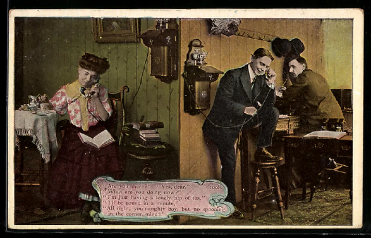 AK Paar telefoniert mit einander