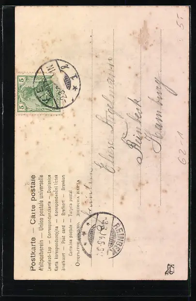 gelaufen 1904, Briefmarke tw. entfernt, guter Zustand