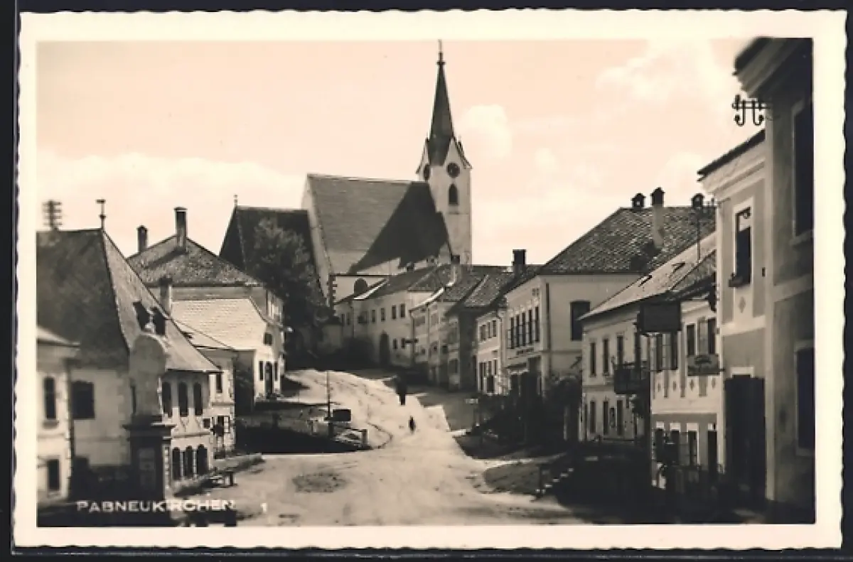 AK Pabneukirchen, Strassenpartie mit Kirche
