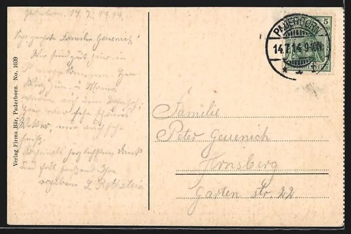alte Ansichtskarte, gelaufen 1914, guter Zustand
