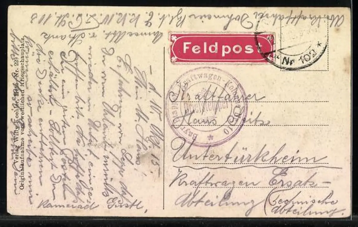 alte Ansichtskarte, gelaufen 1915, Stempelspur, guter Zustand