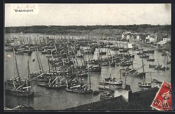 AK Paimpol, Vue du port animé avec de nombreux voiliers amarrés