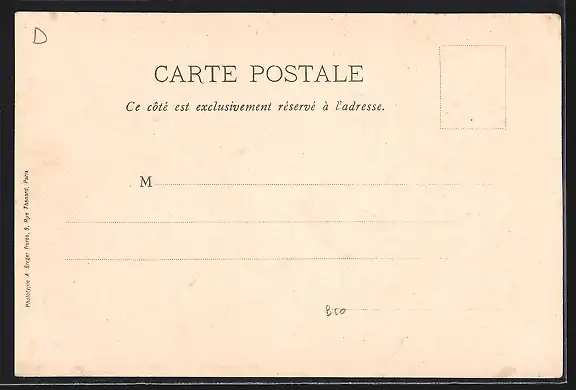 Personenbezogene Daten auf der Rückseite der Karte wurden durch blauen Textmarker unkenntlich gemacht. Die blauen Stellen sind auf die Vorderseite durchgeweicht und wirken sich negativ auf das Postkartenfoto aus