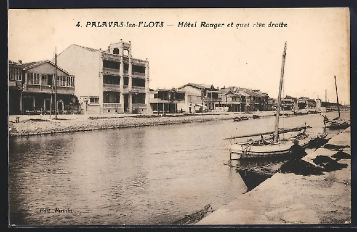 AK Palavas-les-Flots, Hôtel Rouger et quai rive droite
