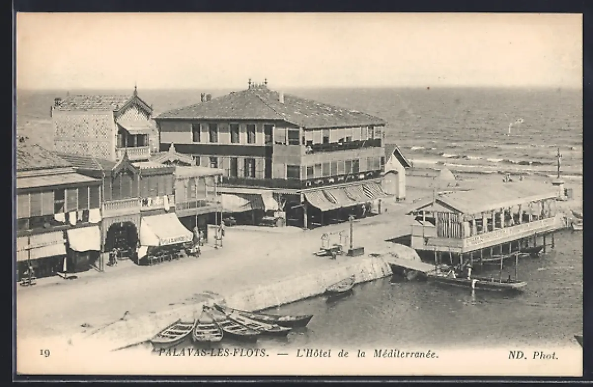 AK Palavas-les-Flots, L`Hôtel de la Méditerranée et vue sur la mer