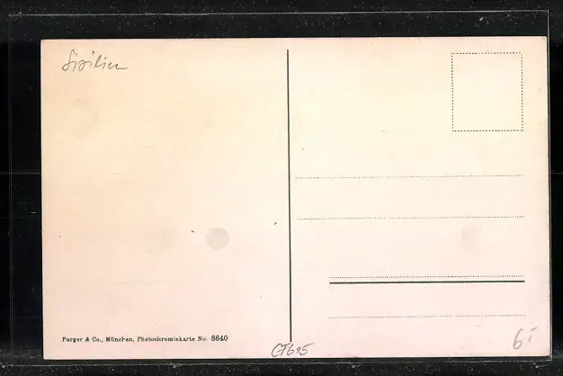 Personenbezogene Daten auf der Rückseite der Karte wurden durch blauen Textmarker unkenntlich gemacht. Die blauen Stellen sind auf die Vorderseite durchgeweicht und wirken sich negativ auf das Postkartenfoto aus