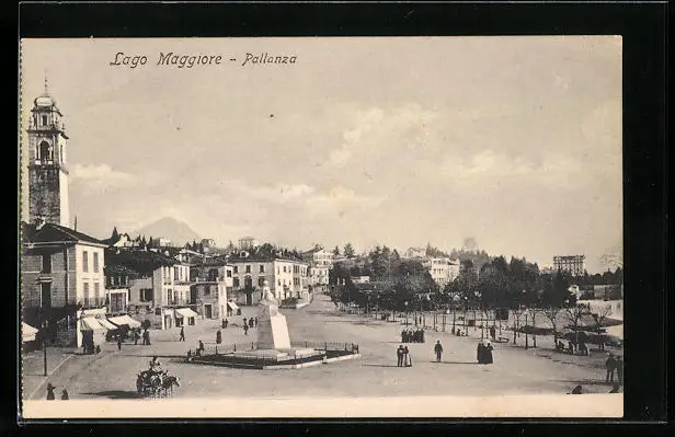 AK Pallanza, Lago Maggiore, Monument vor der Kirche an der Promenade