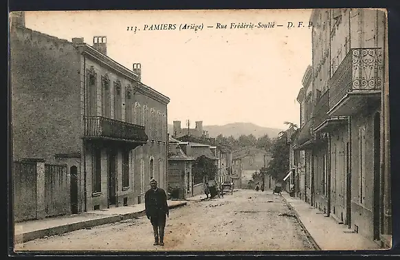 AK Pamiers, Rue Frédéric-Soulié avec passants et maisons anciennes