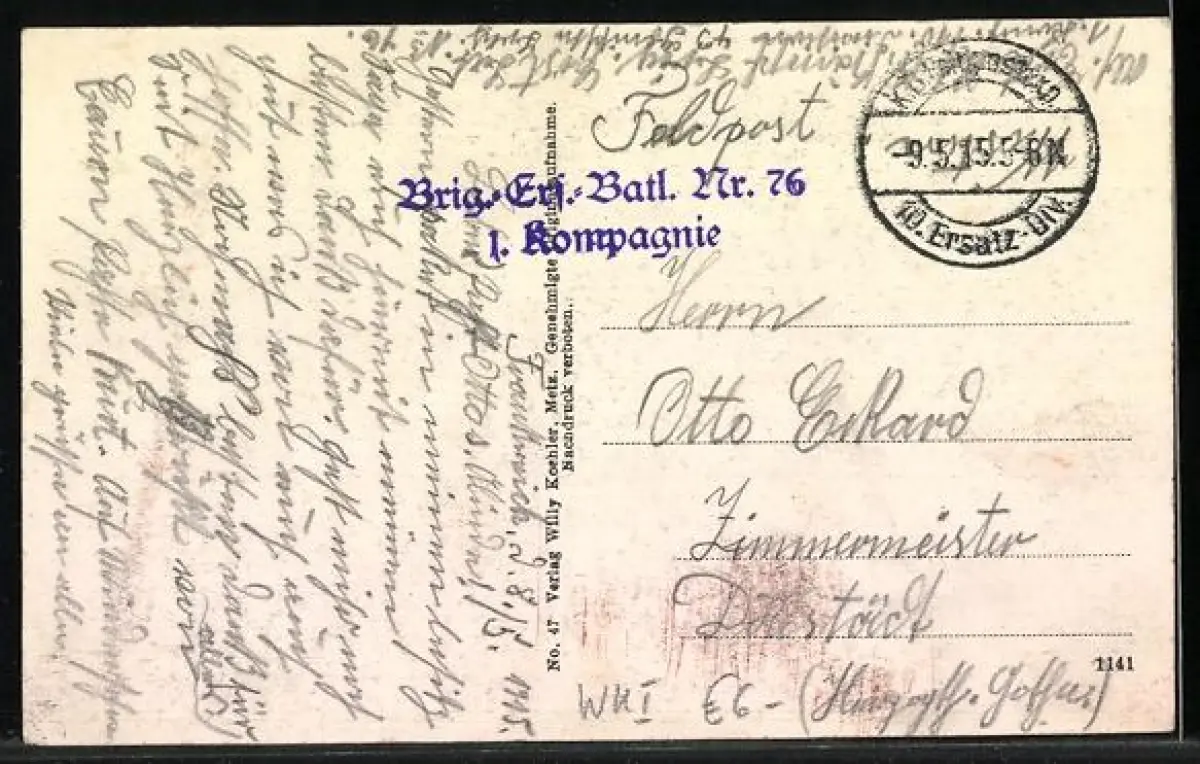 alte Ansichtskarte, gelaufen 1915, Stempelspur, guter Zustand