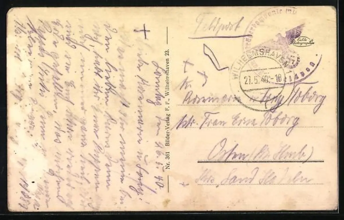 alte Ansichtskarte, gelaufen 1940 als Feldpost, Ecken bestoßen, Bugspur rechts, sonst guter Zustand