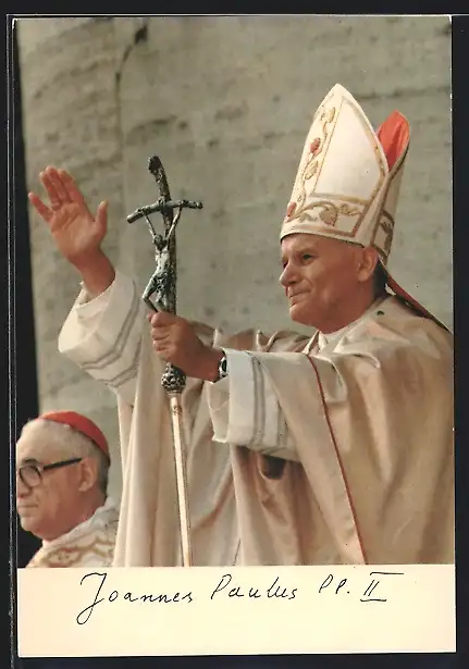 AK Papst Johannes Paul II. hebt grüssend seinen Arm