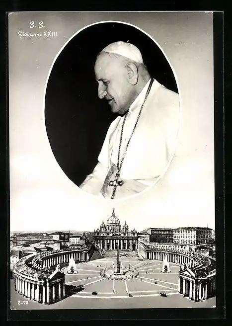 AK Papst Johannes XXIII. in weisser Soutane, Ansicht Vatikan