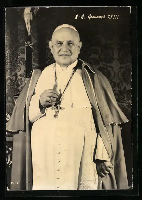 AK Papst Johannes XXIII. mit Kruzifix-Kette in der Hand