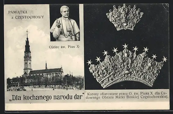 AK Papst Pius X., Dla kochanego narodu dar, Korony ofiarowane