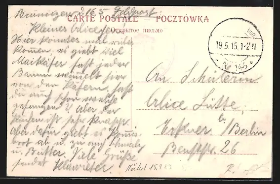 alte Ansichtskarte, gelaufen 1915, Eckknicke re. oben u. li. unten, guter Zustand
