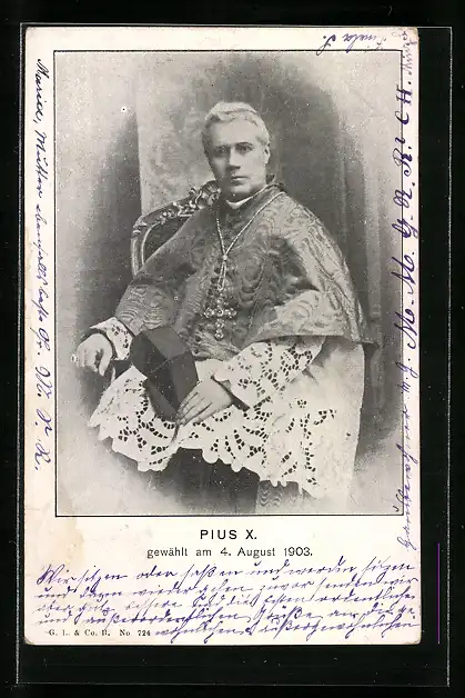 AK Papst Pius X. im Stuhl sitzend, gewählt 1903