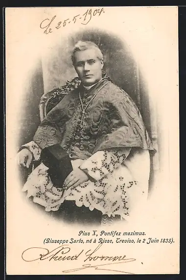 AK Papst Pius X. im weiten Spitzengewand mit Kette