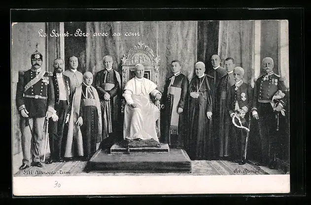 AK Papst Pius X. mit Kardinälen und Soldaten in Uniform