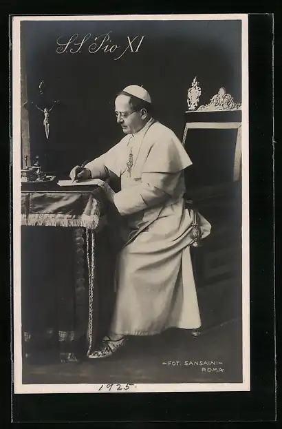 AK Papst Pius XI. beim Unterzeichnen eines Vertrages