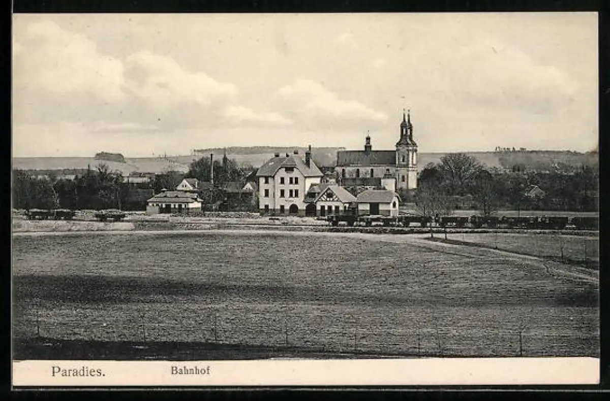 AK Paradies /Kr. Schwiebus, Blick zum Bahnhof