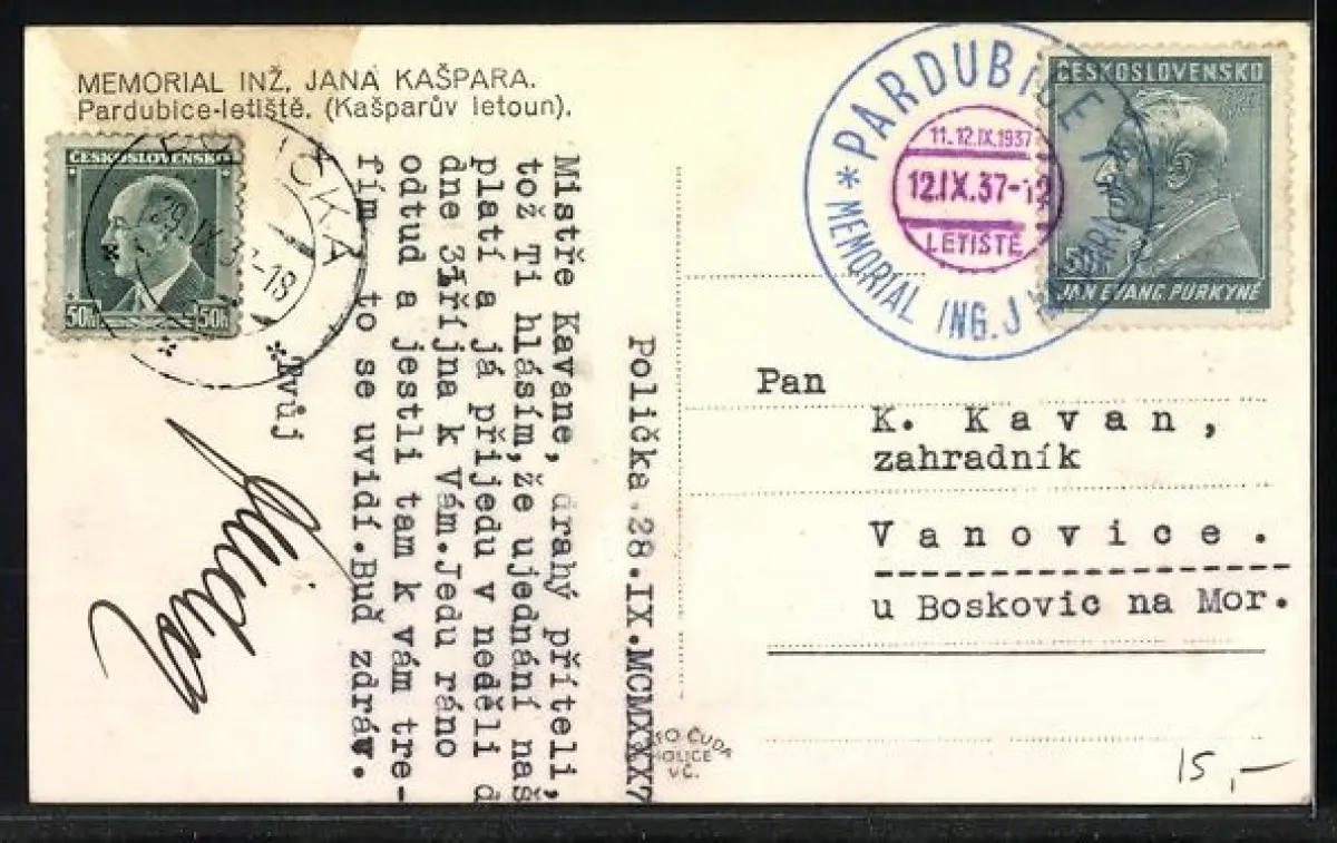 AK Pardubice, Memorial inz. Jana Kaspara, Pilot J. Kaspara in seinem Flugzeug