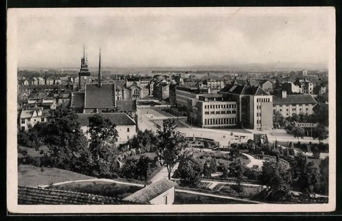 AK Pardubice, Ortsansicht aus der Vogelschau