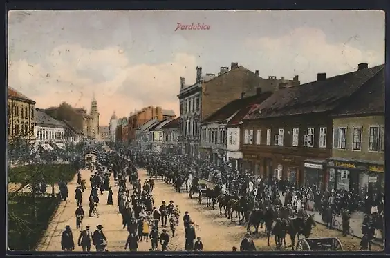 AK Pardubice, Soldaten vor dem Geschäft von F. Jerabek