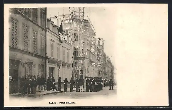 AK Paris, Belagerung Fort Chabrol, Antisemit Jules Guerin, Polzei vorm Gebäude