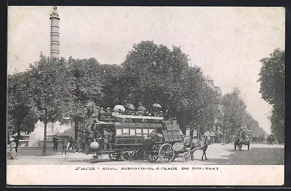 AK Paris, Boulevard Sébastopol et place du Chatelet