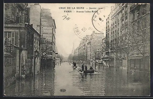AK Paris, Crue de la Seine 1910, Avenue Ledru-Rollin inondée avec barques