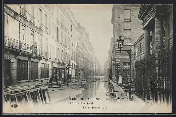 AK Paris, Crue de la Seine 1910, Rue Jacob inondée le 29 Janvier