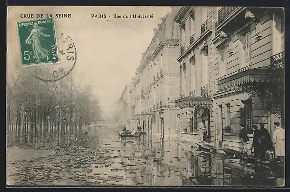 AK Paris, Crue de la Seine Janvier 1910, Rue de l`Universite