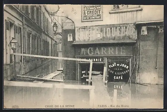 AK Paris, Crue de la Seine, Rue des Ursins inondée devant un café