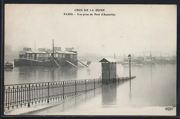 AK Paris, Crue de la Seine, Vue prise du Pont d`Austerlitz