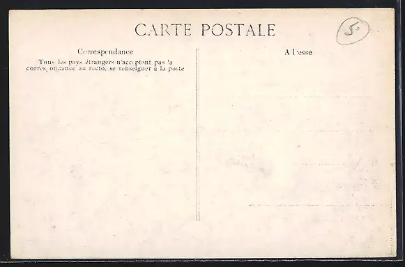 Personenbezogene Daten auf der Rückseite der Karte wurden durch blauen Textmarker unkenntlich gemacht. Die blauen Stellen sind auf die Vorderseite durchgeweicht und wirken sich negativ auf das Postkartenfoto aus