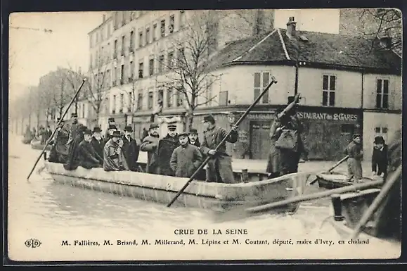 AK Paris, Crue de la Seine, dignitaires en chaland lors de l`inondation