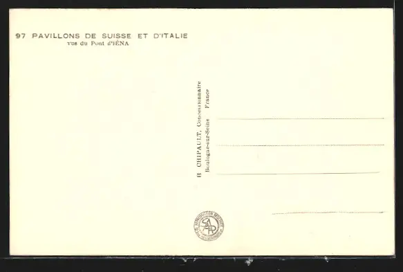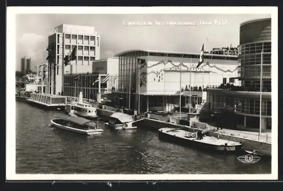 AK Paris, Exposition internationale 1937, Pavillon de Suisse et D`Italie, vue du Pont D`Iena