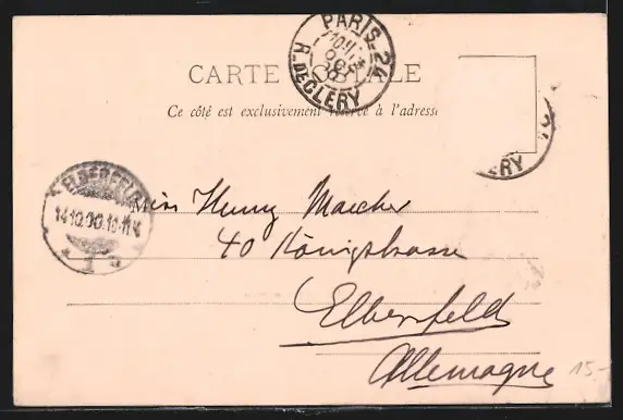 alte Ansichtskarte, gelaufen, Briefmarke entfernt, rückseitig Oberflächenschaden, guter Zustand