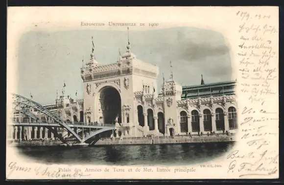 AK Paris, Exposition universelle de 1900, Palais des Armées de Terre et de Mer, Entrée principale