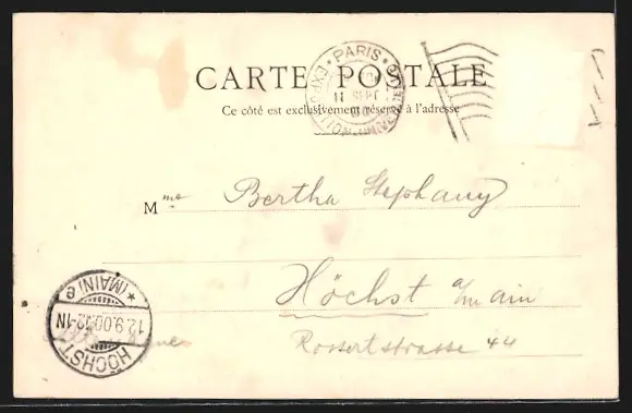 alte Ansichtskarte, gelaufen 1900, Briefmarke entfernt, rückseitig Oberflächenschaden, guter Zustand