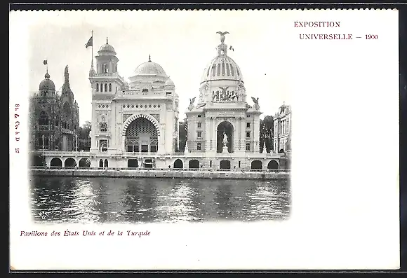 AK Paris, Exposition universelle de 1900, Pavillons des États Unis et de la Turquie
