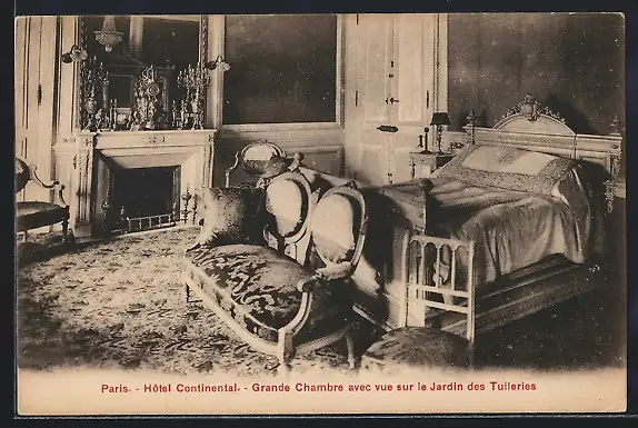 AK Paris, Hotel Continental, Grande Chambre avec vue sur le Jardin des Tuileries